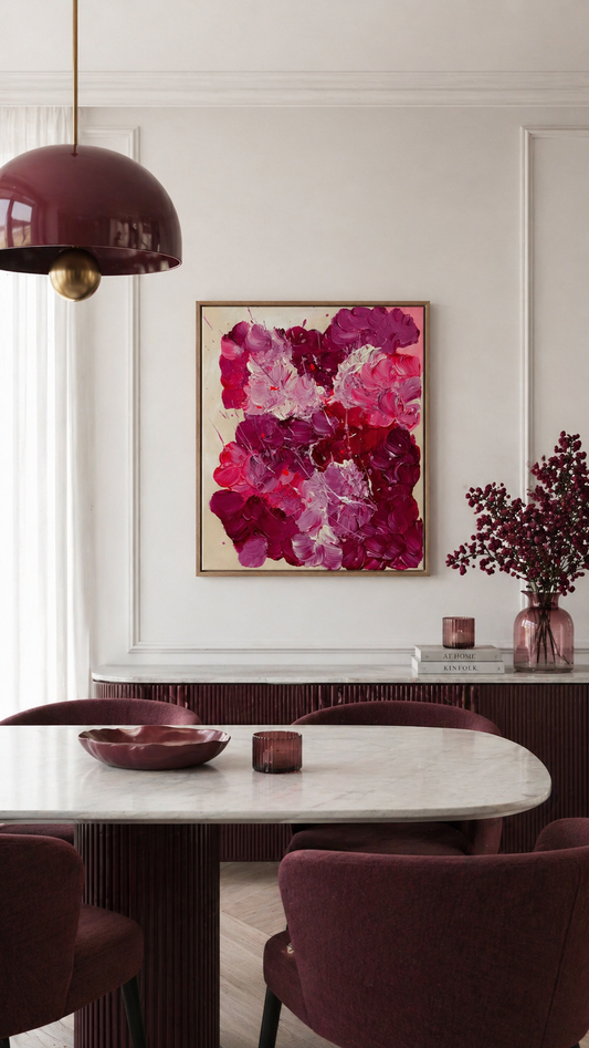 Abstract art is particularly well-suited for living rooms, offices, or open areas where color is allowed to make a statement. Depending on the incidence of light, wall color, and surroundings, a piece can appear calm or intense – precisely what makes abstract art so vibrant.