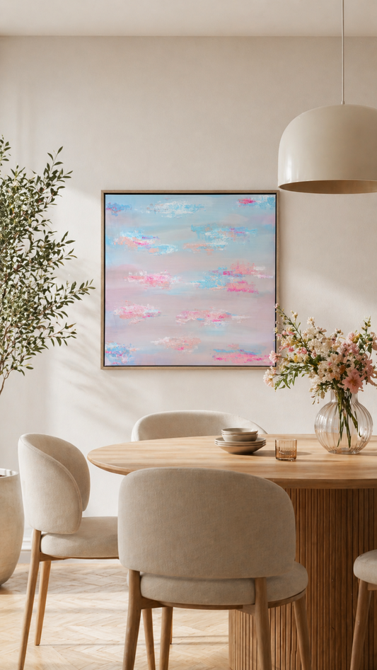 "PASTEL HORIZONS" – Abstract Acrylic Painting in Pastel Blue & Pink